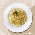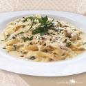 Talharim, creme de leite, presunto, frango desfiado, gratinado com parmesão.