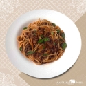 Fettuccine, cream, ham, chicken, gratinated with parmesan.