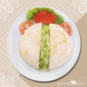 Pão sírio, salpicão com presunto, queijo, cenoura, requeijão cremoso, decorado com alface, tomate e palmito